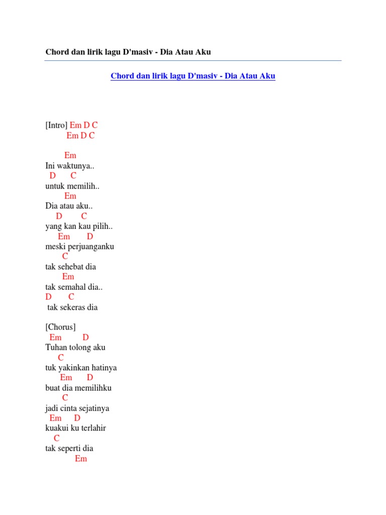 Chord Dan Lirik Lagu D Masiv Dia Atau Aku