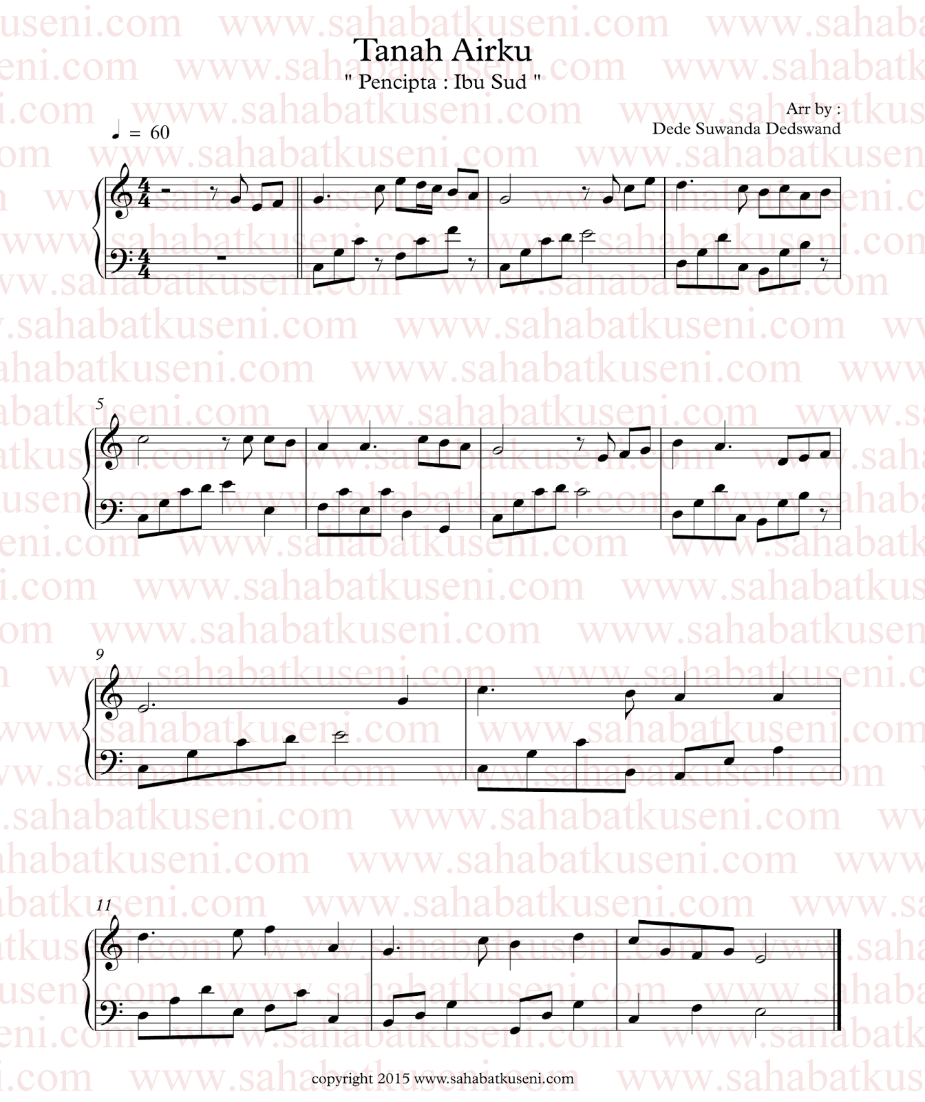 Partitur Solo Piano Lagu Tanah Airku Ibu Sud Sahabatku Seni