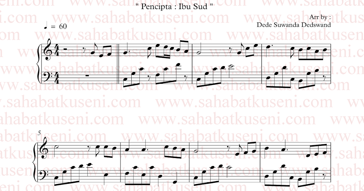 Partitur Solo Piano Lagu Tanah Airku Ibu Sud Sahabatku Seni