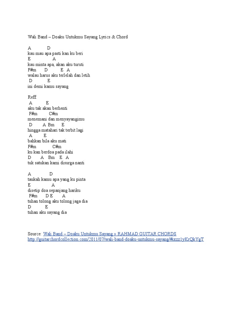 Chord Gitar Lirik Lagu Wali Doaku Untukmu Sayang Music Chasizu