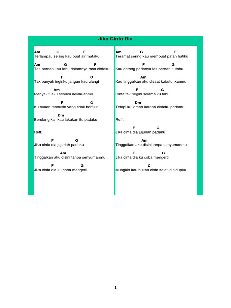 Chord Gitar Jika Cinta Dia Alifahmuwafiqoh