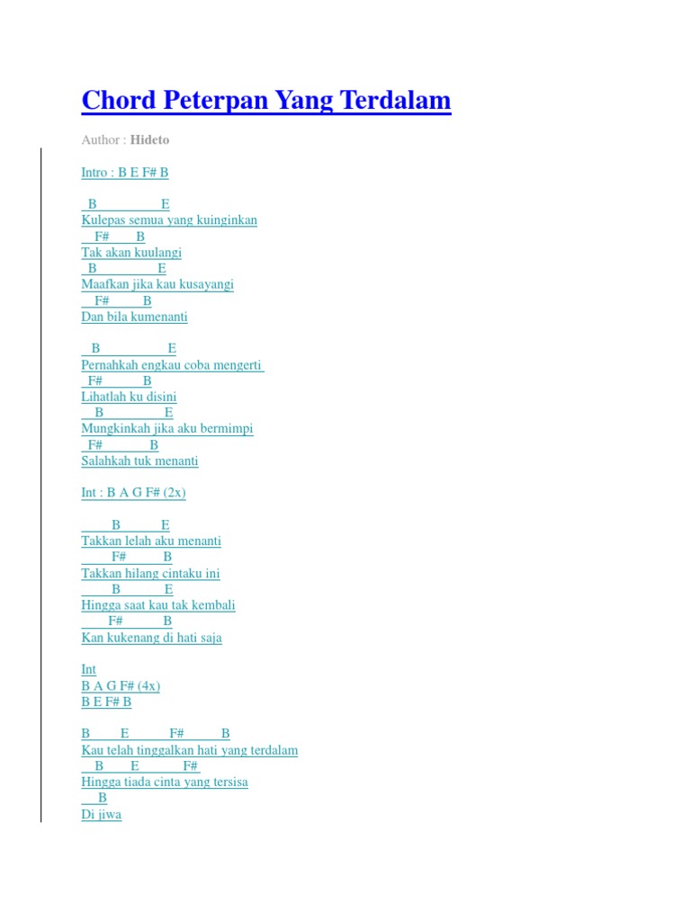 Kunci Chord Gitar Dan Lirik Lagu Yang Terdalam Peterpan