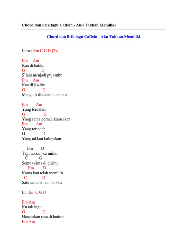 Chord Dan Lirik Lagu Caffein Aku Takkan Memiliki